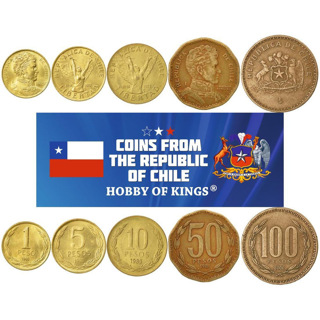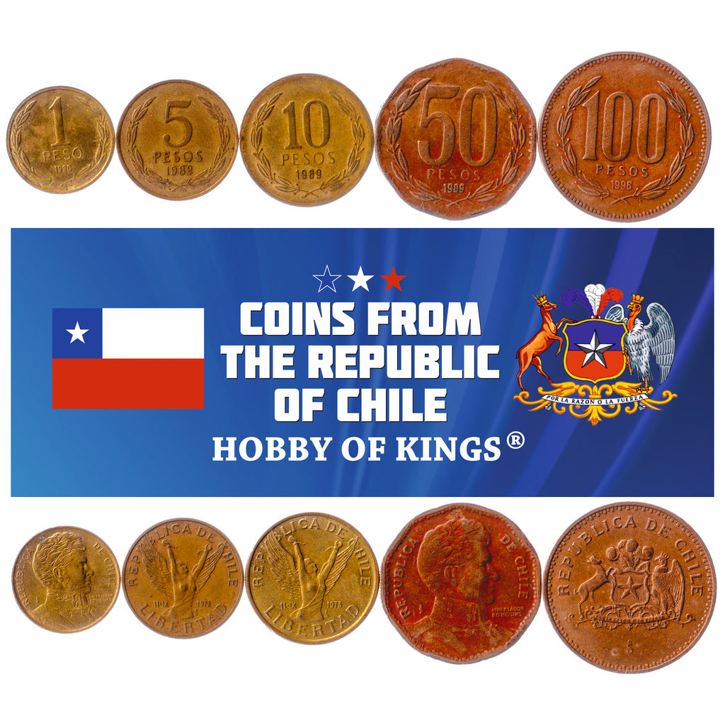 这套5枚硬币产自以下国家:智利(República de Chile)、智利共和国。