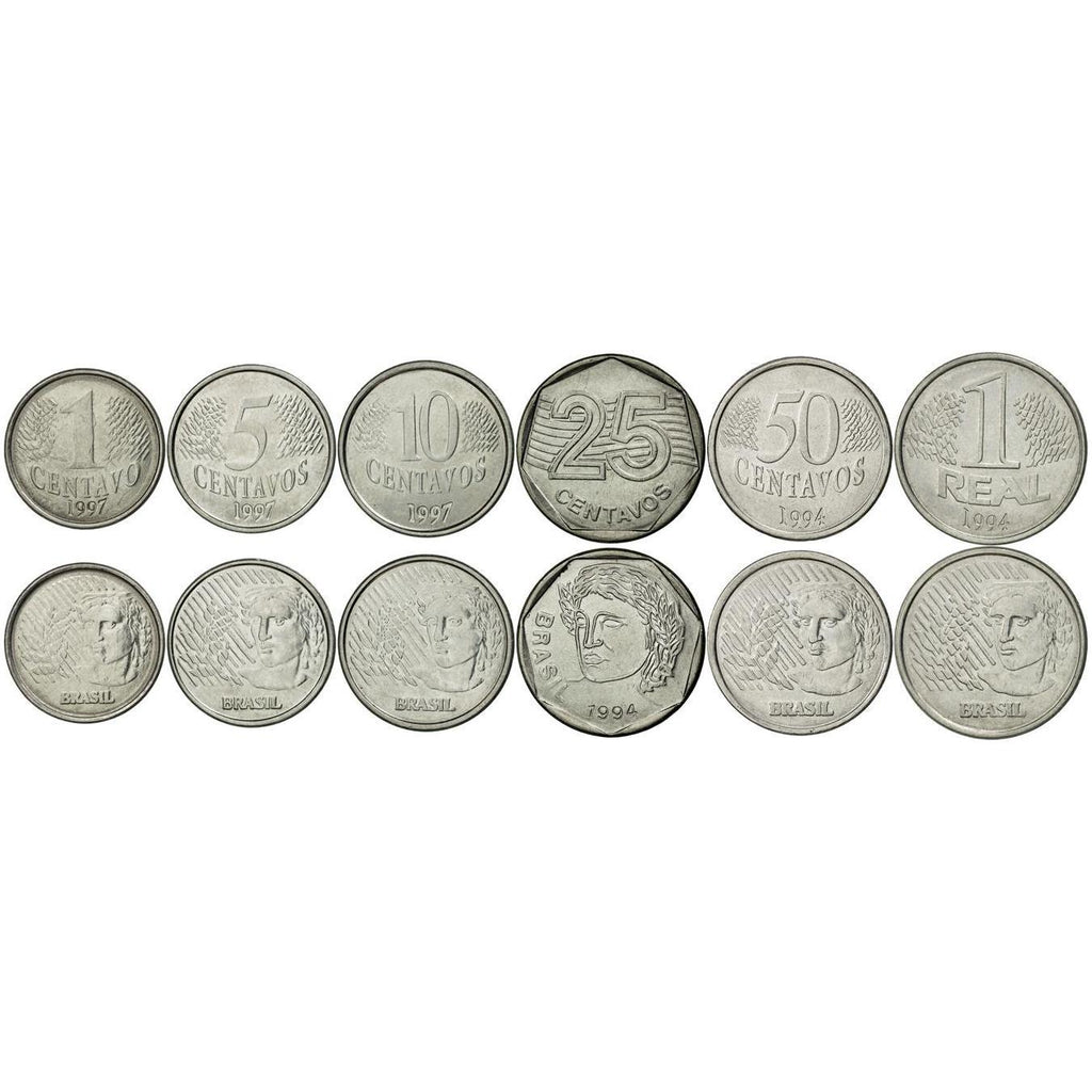 反面文字:1 CENTAVO 1997,5 CENTAVOS 1994,10 CENTAVOS 1994,N 25RNcentavosN,50 CENTAVOS 1994,1Real1994
