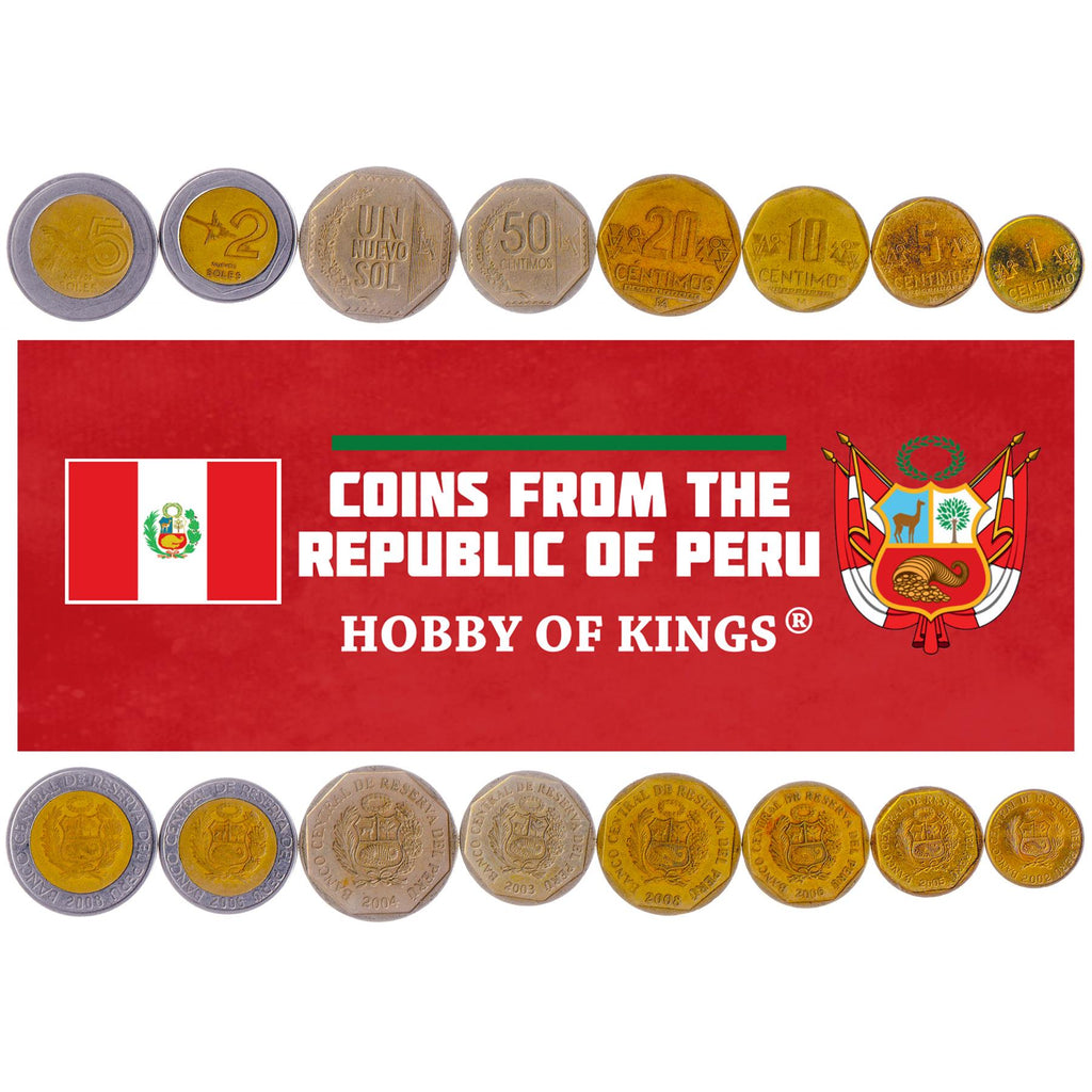 8枚硬币套装产自以下国家:秘鲁(秘鲁共和国)、República del Perú。