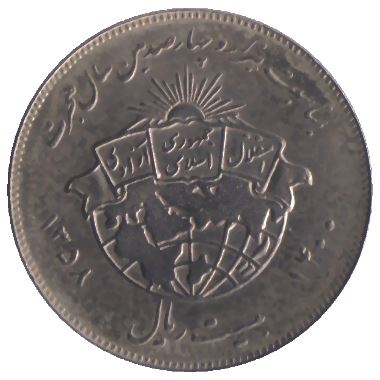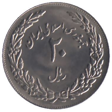 正面翻译:为纪念希吉拉独立年 | 自由 | 伊斯兰共和国 1358 1400 二十里亚尔